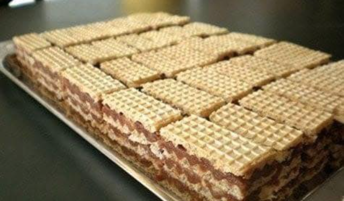 Foile de napolitană se ung pe partea cu găuri mai mari și se acoperă cu partea mai netedă, până se consumă toată compoziția.
